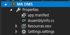 ClickOnce 보안 설정 사용을 체크하게되면 프로젝트의 프로퍼티에 app.manifest가 보이게된다.