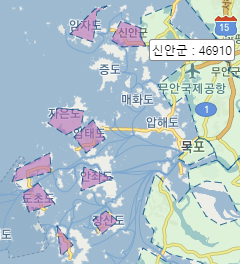 이처럼 몆몆지역은 여러 섬들로 이루어져있기때문에 멀티폴리곤 타입으로 표현된다.
