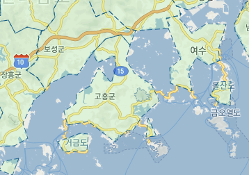 전라남도 고흥군과 여수를 예로 들면 아래 사진과 같다.