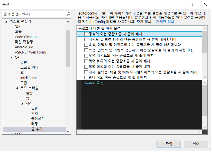 하지만 Visual Studio에서는 중괄호가 자꾸 밑으로 내려갔다..