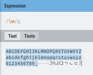또는 A-z, ㄱ-힣으로 대문자,소문자, 자음, 모음, 복합까지 포함할 수도 있다. 숫자 또한 0-9로 표현된다.