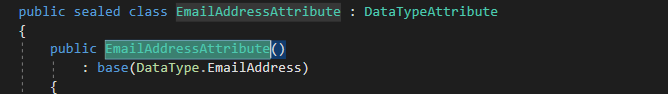EmailAddressAttribute를 지정하는 방식과 DataTypeAttribute의 파라미터로 DataType을 결정하는 방식의 차이점이 궁금했는데 EmailAddressAttribute는 자주 사용되기 편하게 DataTypeAttribute에서 따로 뽑아놓은듯하다.